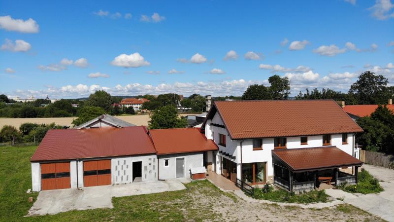 - przylegającym do domu budynkiem gospodarczym, w którym znajdują się trzy małe pomieszczenia magazynowe oraz garaż dwustanowiskowy (z jednym kanałem) – łączna powierzchnia zabudowy 125 m2