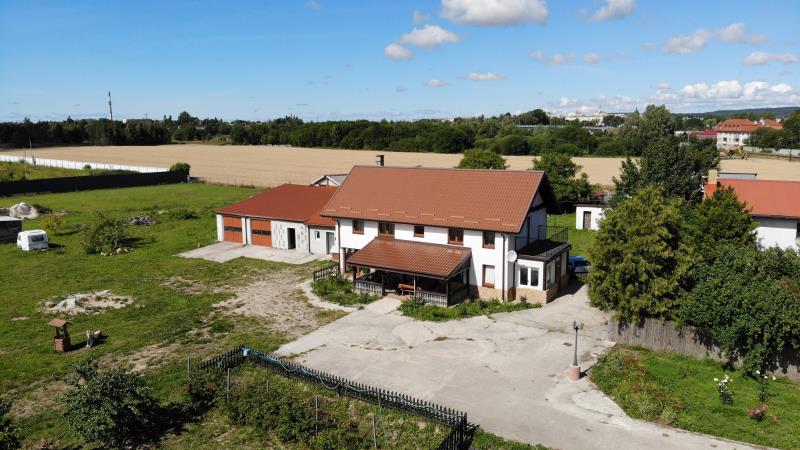 - dom jednorodzinny o powierzchni użytkowej ok. 180 m2, w domu znajduje się łącznie 8 pokoi, na parterze duży salon z kuchnią oraz sypialnią, łazienka z wc, pomieszczenie na zimowy ogród oraz kotłowania, na piętrze 6 oddzielnych pokoi (dwa z garderobami) oraz łazienka z WC.