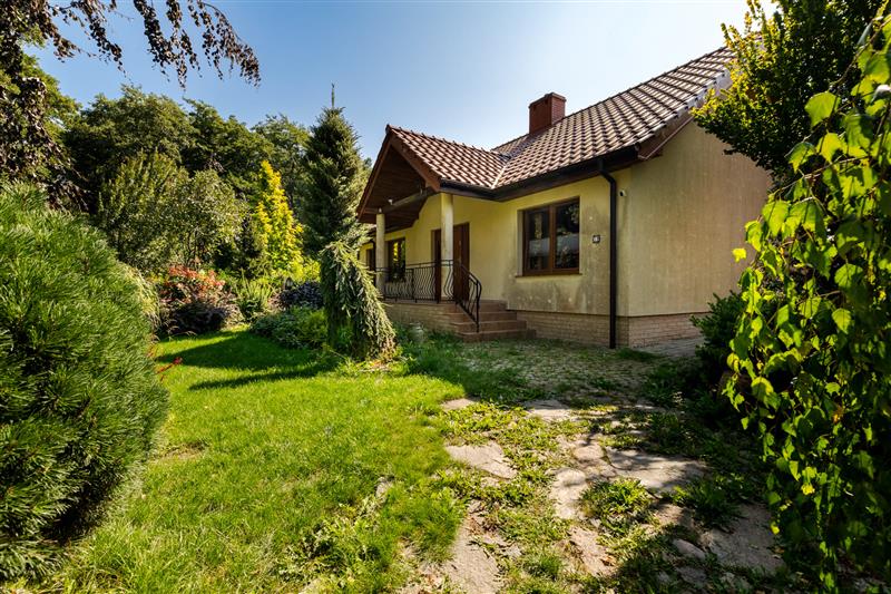 Budynek mieszkalny wybudowany metodą tradycyjną, parterowy z użytkowym poddaszem.