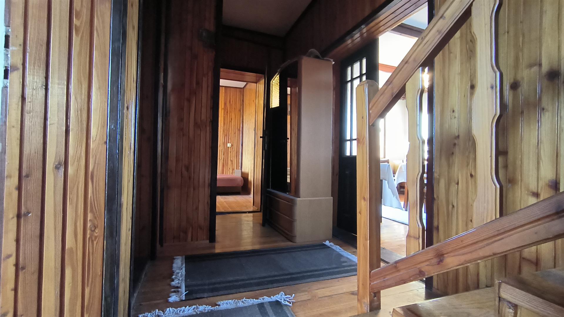 Na poddaszu użytkowym znajduje się duża kuchnia ok. 18 m2 z piecem kuchennym kaflowym oraz spiżarnią, pokój z wyjściem na balkon 12,50 m2, pomieszczenie gospodarcze ok. 4,50 m2, łazienka 3,5 m2 oraz przedpokój. Podłogi pokryte deskami. W przedpokoju znajduje się właz z wyjściem na strych nieużytkowy.