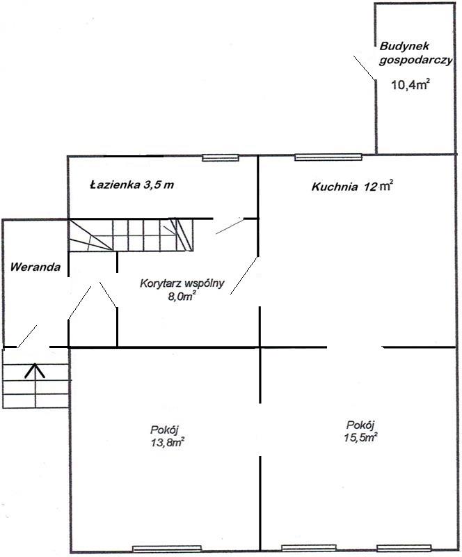 Do mieszkania należą 2 piwnice o łącznej pow. 28,9m2 oraz przyległy budynek gospodarczy o pow. 10,4m2ze stryszkiem, który pełni funkcję pokoju letniego. Wejście do budynku gospodarczego od ogrodu.