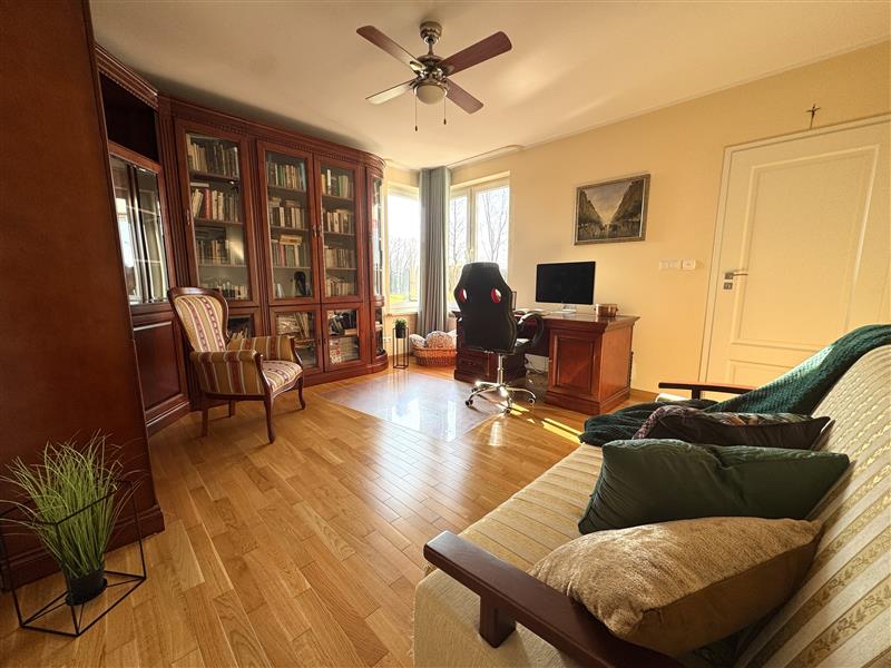 Dom położony jest na dużej działce o pow. 2.749m2, która zapewnia pełną prywatność i nieograniczone możliwości aranżacyjne. Zadbany ogród, piękne nasadzenia oraz mały plac zabaw dla dzieci sprawiają, że to miejsce jest idealne dla rodzin.