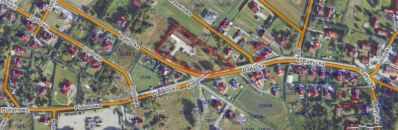 Działka o powierzchni 6900 m2 zabudowana budynkami magazynowo- produkcyjnymi o powierzchni ok. 421 m2,wysokości 3,5m oraz budynkiem biurowym o powierzchni 52 m2.