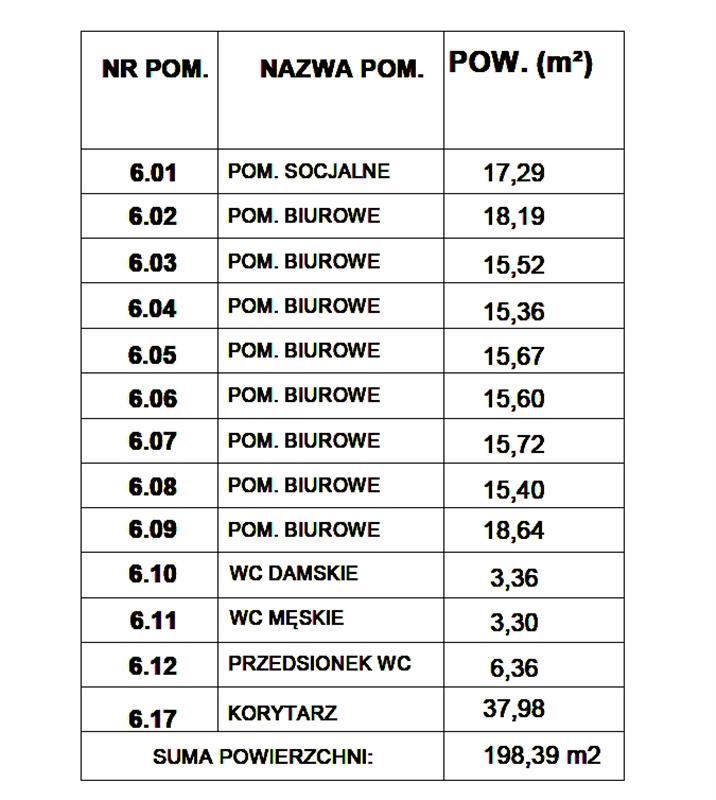 Charakterystyka lokalu: Powierzchnia: 198,69 m2 na 6 kondygnacji biurowca (standard bankowy)9 pomieszczeń biurowych (15–18,5m2)Przestronny korytarz (37,98 m2) idealny na recepcję lub strefę wspólnąPomieszczenie sanitarne (2 toalety + przedsionek)Możliwość dowolnej aranżacji wnętrza,Spektakularny widok panoramiczny na Koszalin