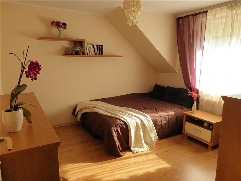 Na piętrze: 3 sypialnie w tym jeden z garderobą, łazienka z kabiną prysznicową, wejście na strych, który może być dodatkowym pokojem, bo są 3 okna w tym jedno 3szybowe połaciowe, siłownią, garderobą itp.