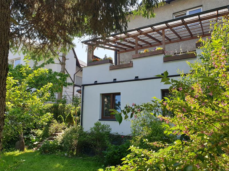 Na parterze: garaż, pom. gospodarcze oraz z osobnym wejściem mieszkanie 2 pokojowe (36m2) - na stancję, biuro, może być tzw. "seniorówką". Duża wiata ok.40m2.