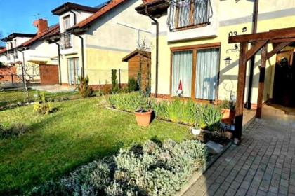 Działka o powierzchni 350 m2, ogrodzona, z licznymi nasadzeniami.