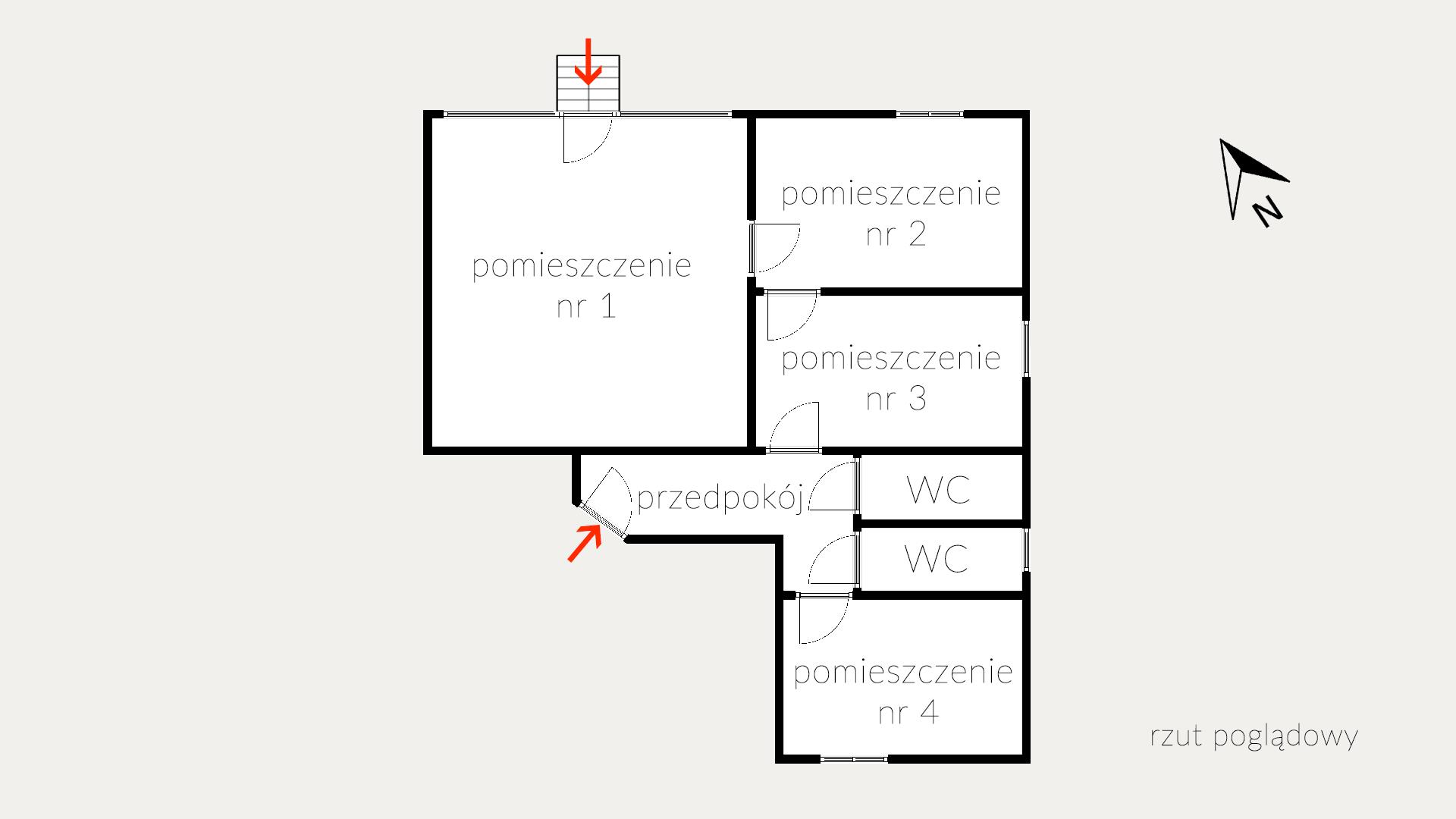 Lokal usytuowany na wysokim parterze 2- piętrowej kamienicy, z niezależnym wejściem bezpośrednio z ulicy.