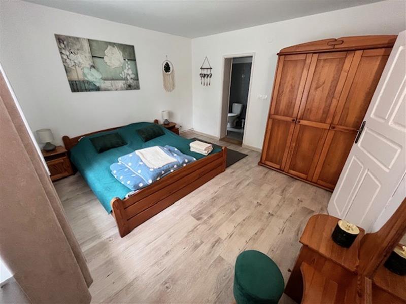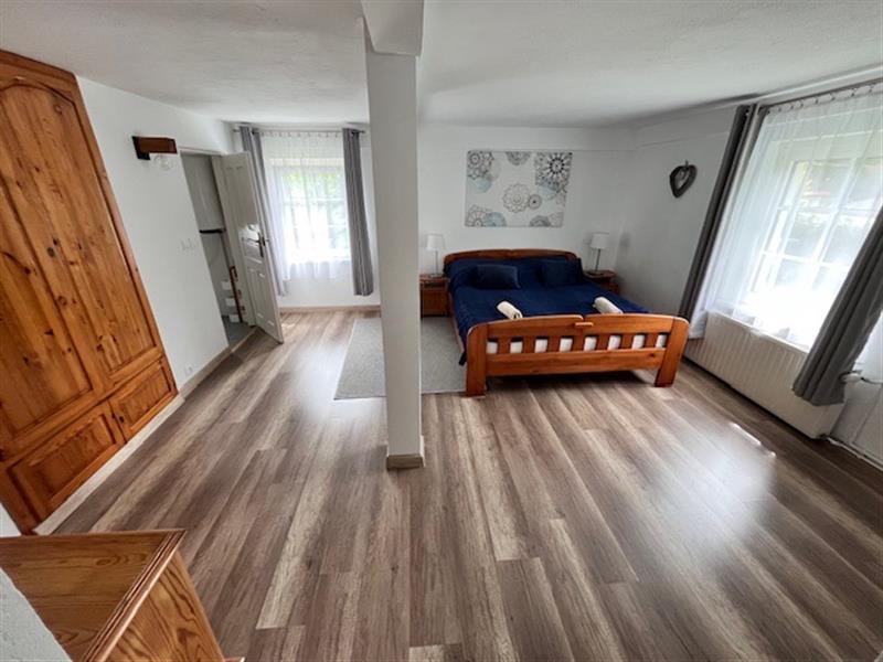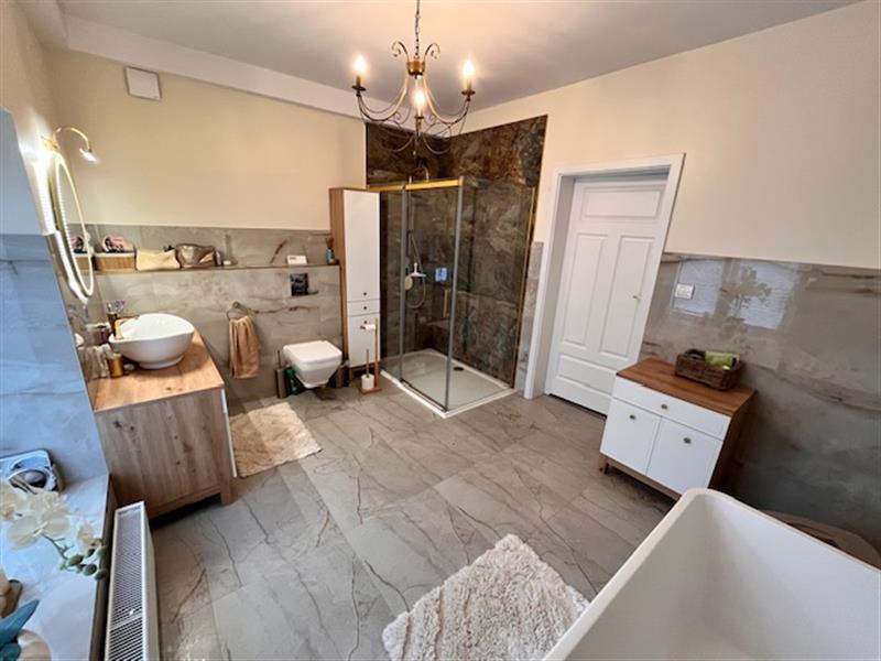 • Parter: 2 komfortowe apartamenty z łazienkami (4-5 osób), kuchnia z kominkiem, pokoje służbowe z łazienką