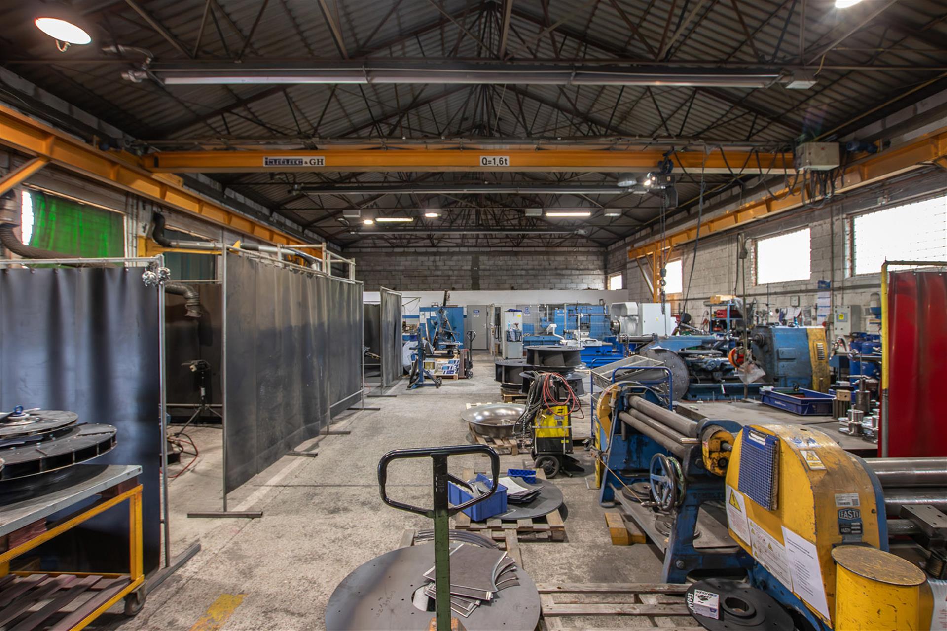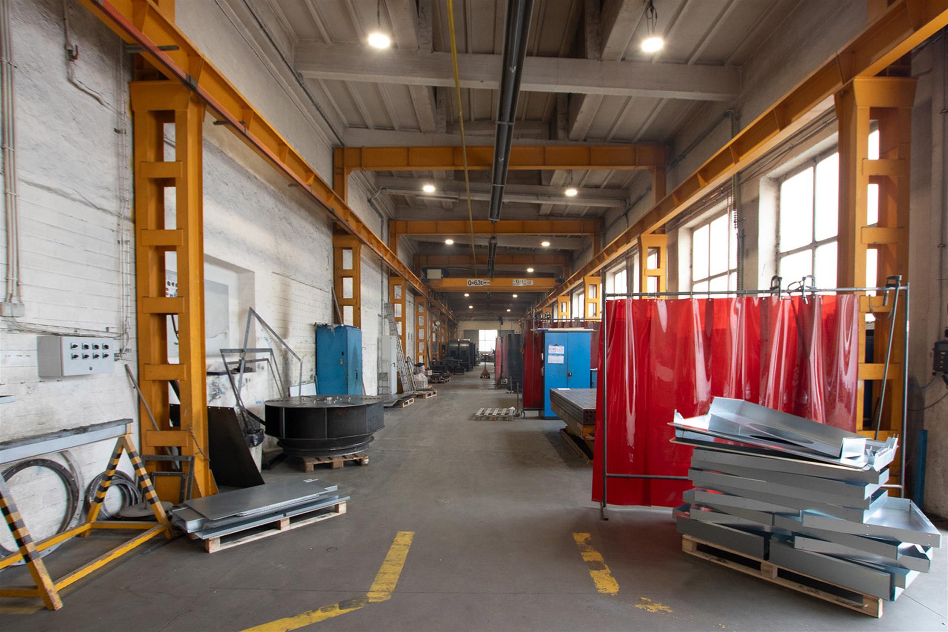 hale pras i wycinarek, pom. magazynowe, pakowalnia, stanowisko spawania blach i kontroli jakości.