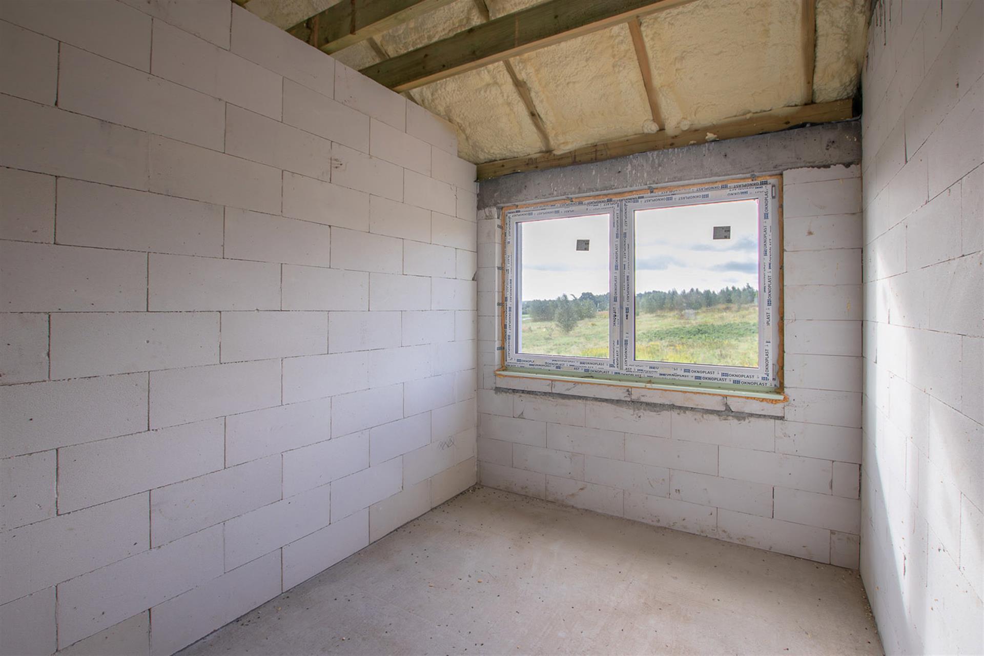 Dom jednorodzinny w trakcie budowy zlokalizowany na terenie nowego osiedla domów jednorodzinnych.