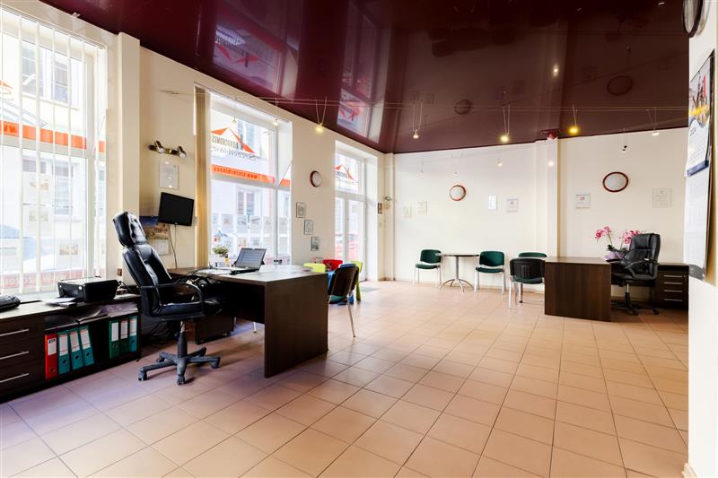 • Sala główna o pow.45,13 m2, na podłodze gres Villeroy & Boch, sufit napinany Barrisol mirror, na ścianach gładź pokryta tapetą dekoracyjną "Gewebą" - z włókna szklanego. Dwie duże witryny , wejście do lokalu - podwójne drzwi przeszklone.