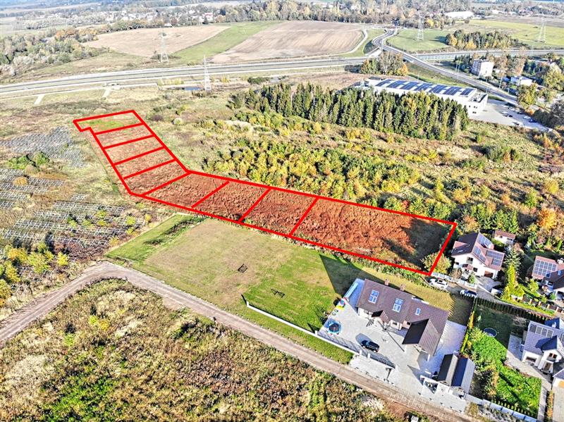 Prąd, woda, gaz i kanalizacja znajdują się w drodze z płyt jumbo – na wysokości ostatniego domu, około 120 metrów od granicy działki.