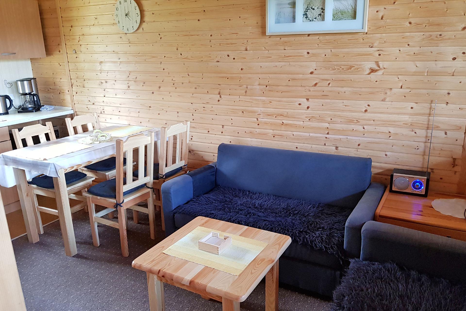 W cenie: umeblowanie i wyposażenie domków, zabudowa kuchenna, płyta ceramiczna, lodówka.