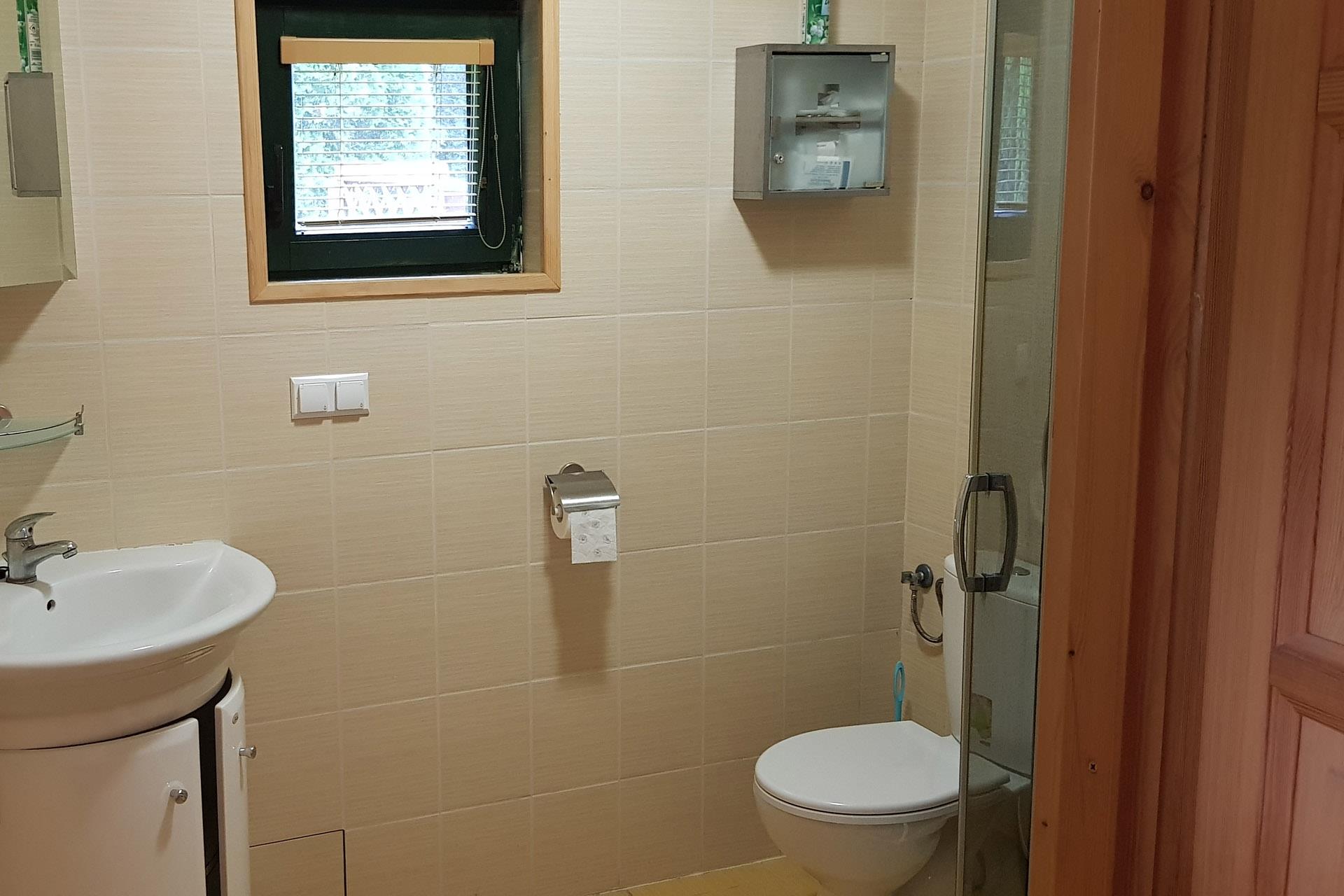Okna drewniane, podłogi - wykładziny dywanowe; łazienka - glazura, terakota, kabina natrysk.