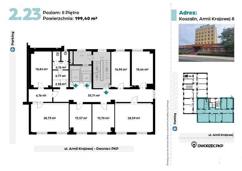 Lokal użytkowy 199,4 m2 , I piętro , Koszalin, ul. Armii Krajowej (wejście od ul. Jana z Kolna)