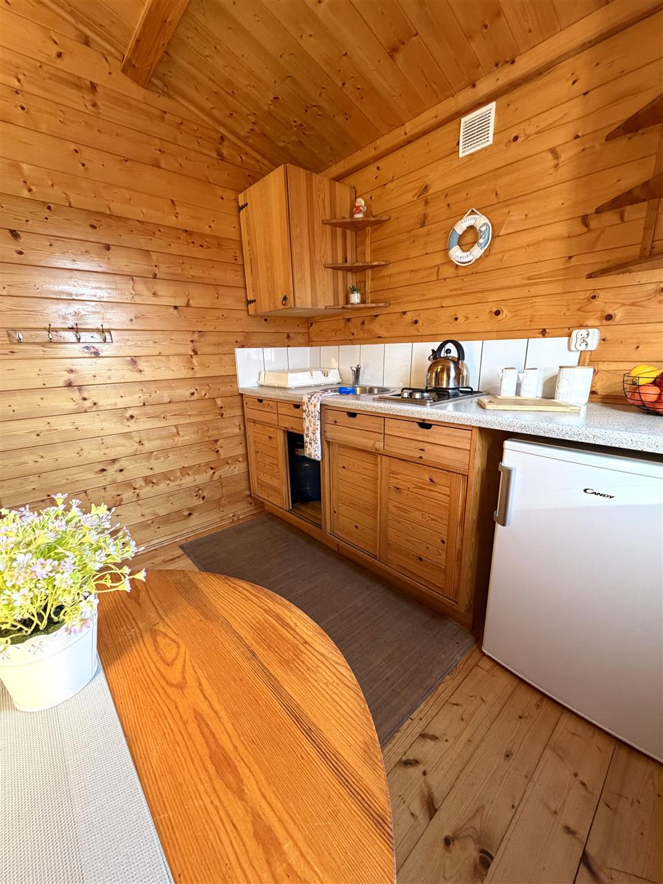 - instalacje: sieć elektryczna, wodno-kanalizacyjna. W kuchni aneks kuchenny z kuchenką gazową zasilaną z butli przenośnej