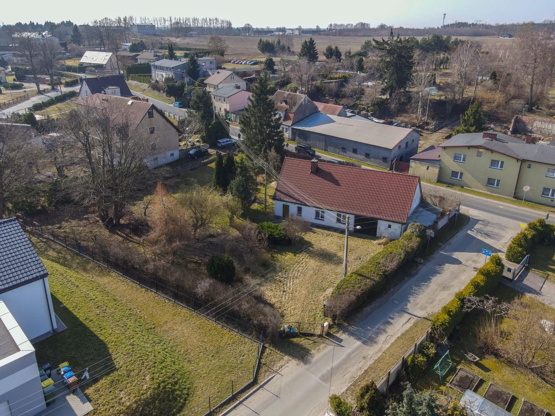 Dom przedwojenny, parterowy z poddaszem użytkowym, murowany, dach pokryty blachodachówką.