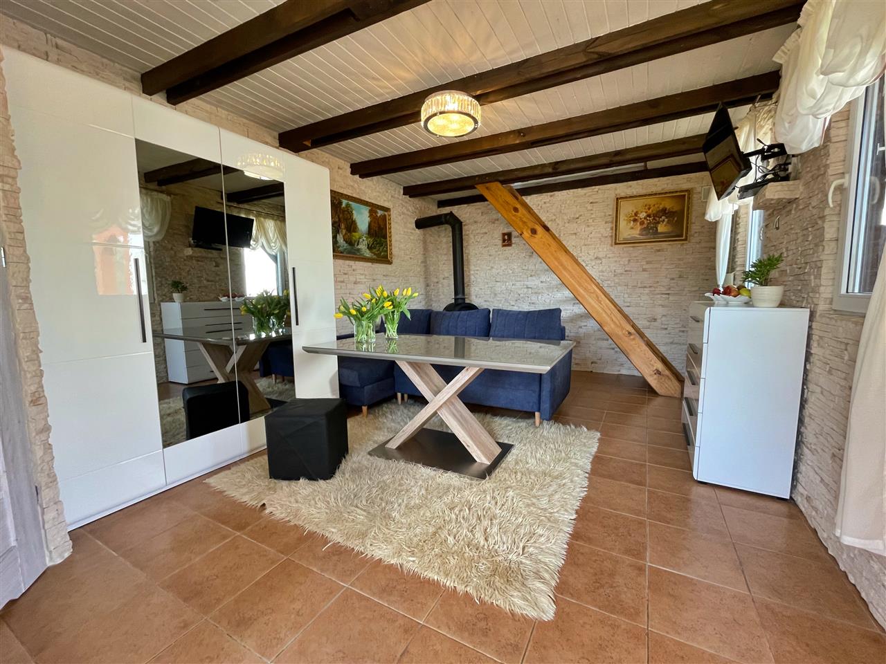 BUDYNEK: oddany do użytkowania w 2017 r., wolnostojący, dwukondygnacyjny z poddaszem użytkowym. Solidnie zbudowany i wykończony, murowany, stropy w przeważającej części prefabrykowane TERIVA, ocieplony, elewacja typu putz wykonana w 2021 r., dach kryty dachówką ceramiczną, okna PCV oraz okna połaciowe typu Velux. Balkony wyłożone deską kompozytową, ozdobne balustrady wewnętrzne i zewnętrzne kute. Na korytarzach terakota, w pokojach na podłodze panele podłogowe, ściany malowane+ dekoracyjne tapety.