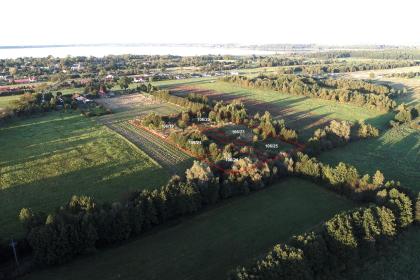 Działka z jeziorem i WZ na 3 domy. Powierzchnia nieruchomości to 3,89 ha z czego ok. 1,35 ha to grunt a reszta to jezioro. 5 km od plaży morskiej.